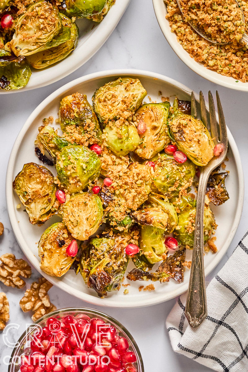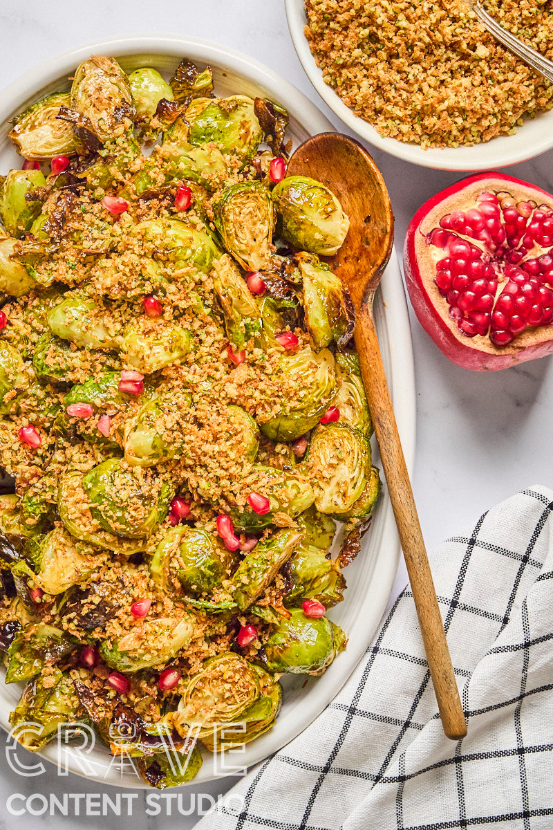 Roasted Balsamic Brussels Sprouts with Walnut Pangrattato